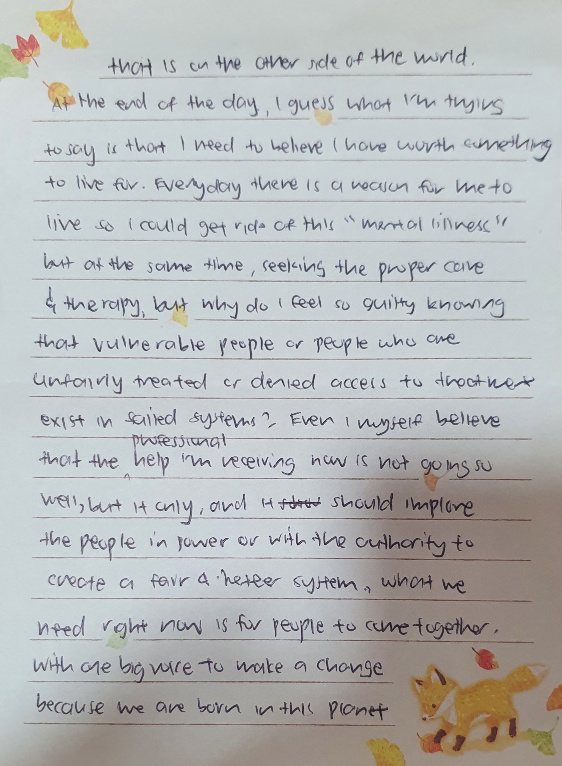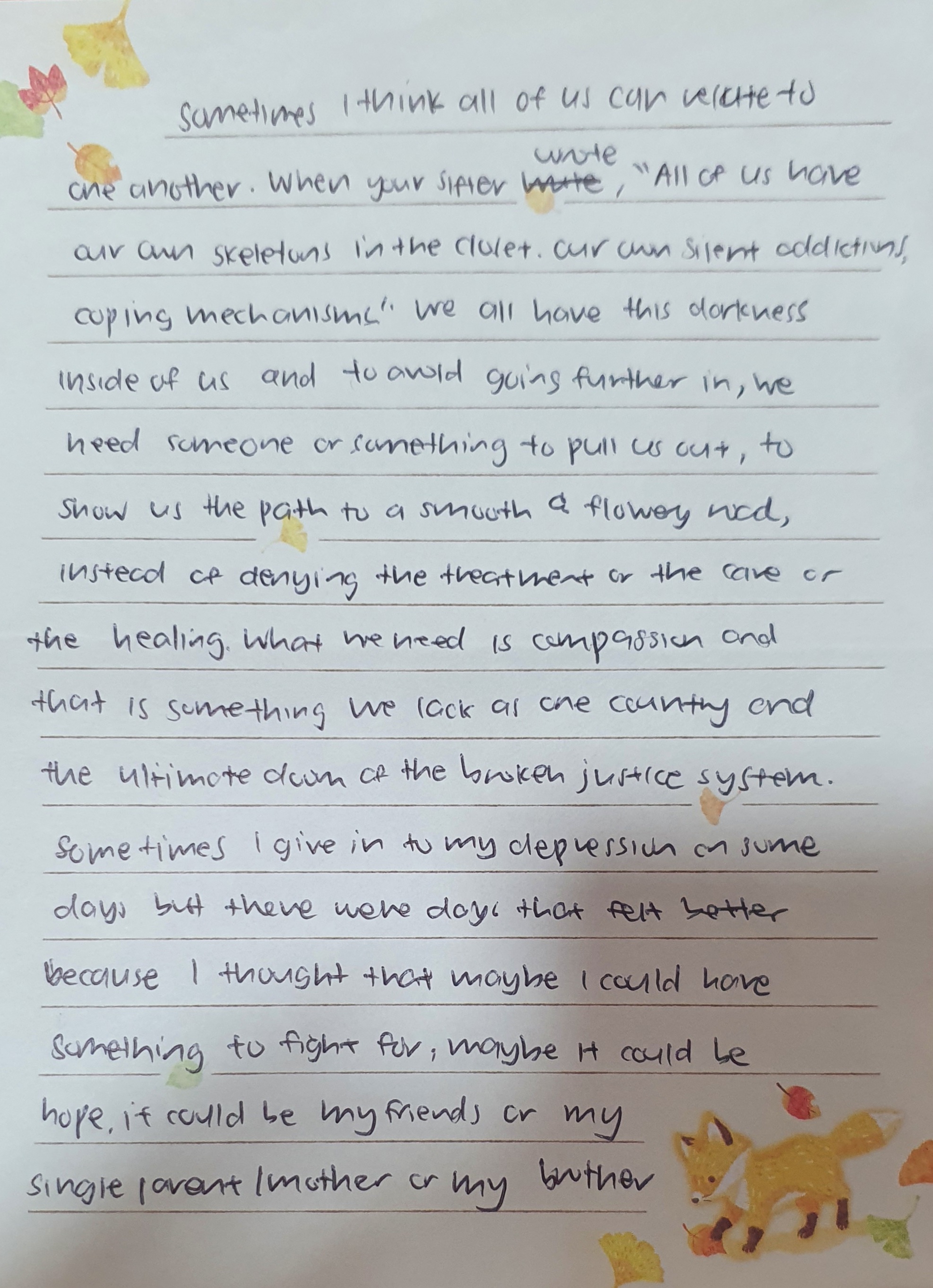 I dearly wish that your story and the stories of those like you would finally give Singaporeans in power the courage to transform their legal system from a colonial relic to a visionary, ground breaking model of justice that moves beyond kneejerk, punitive reactions.