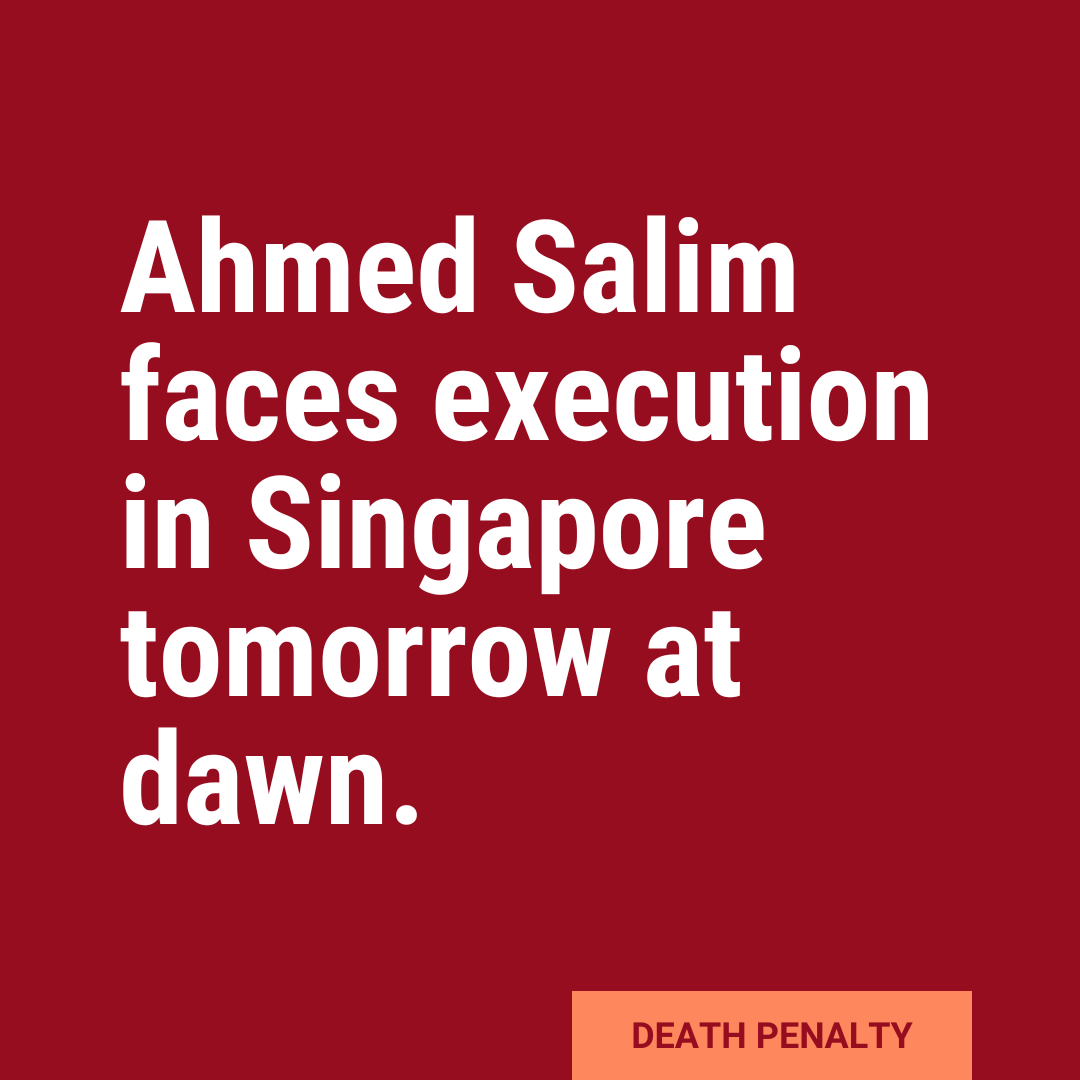 Ahmed Salim, a 35 year-old Bangladeshi migrant worker, faces execution at dawn on 28 February, in Singapore’s Changi Prison. This is the first execution in 2024, despite growing calls for a moratorium on the death penalty. #AbolishTheDeathPenalty #StopTheKilling