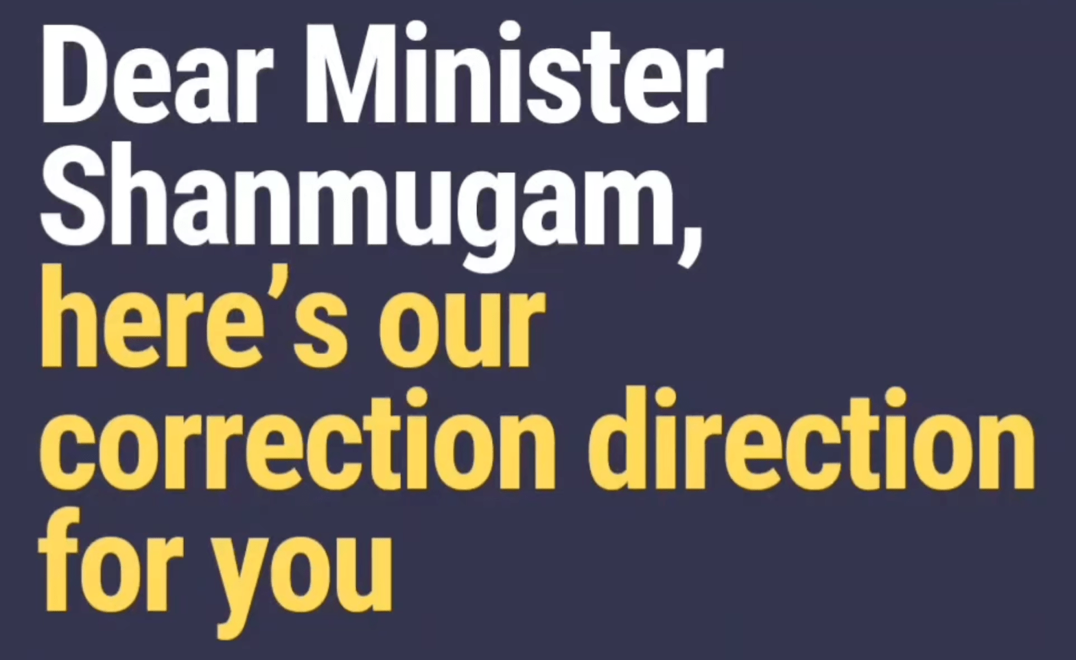 Dear Minister Shanmugam, here’s our correction direction for you 😘
